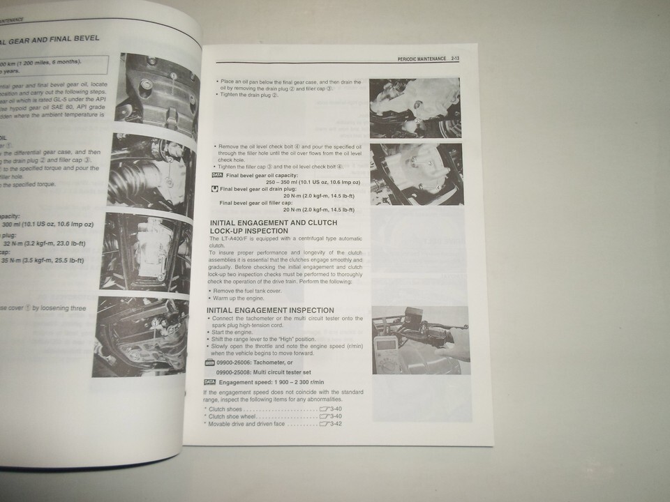 pas a pas Instructions, a explose illustrations et/ou schemas, excellent manuel a avoir lorsque vous possedez une SUZUKI LT-A400/F. Ce manuel vous fera economiser de l'argent Reparations/Service.
