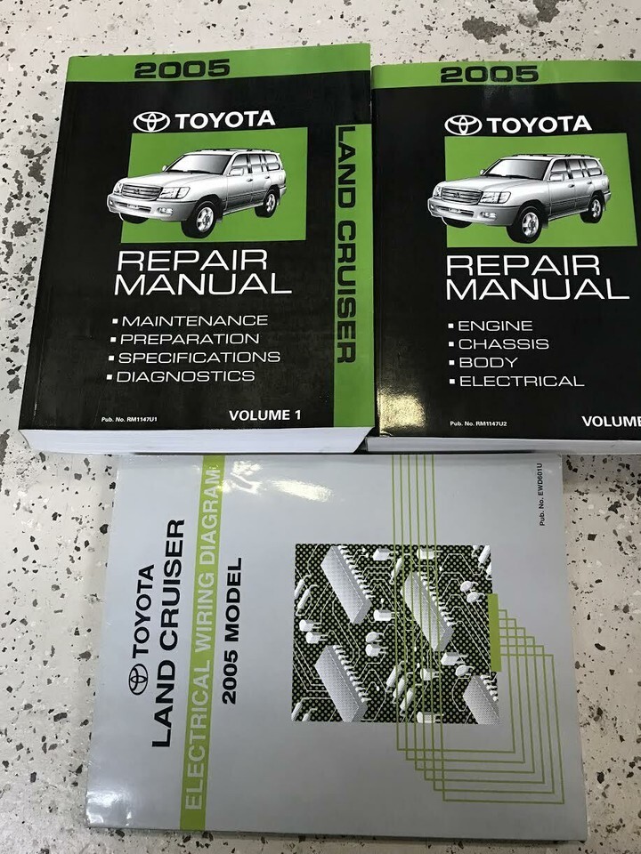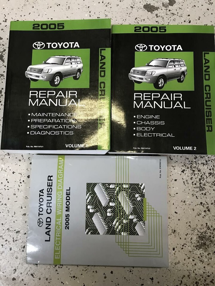 Nuovo Secondo Stampa 2005 Toyota Land Cruiser Factory Service Manual 2 Volume Set e Manuale del diagramma di cablaggio leggermente usato 2005