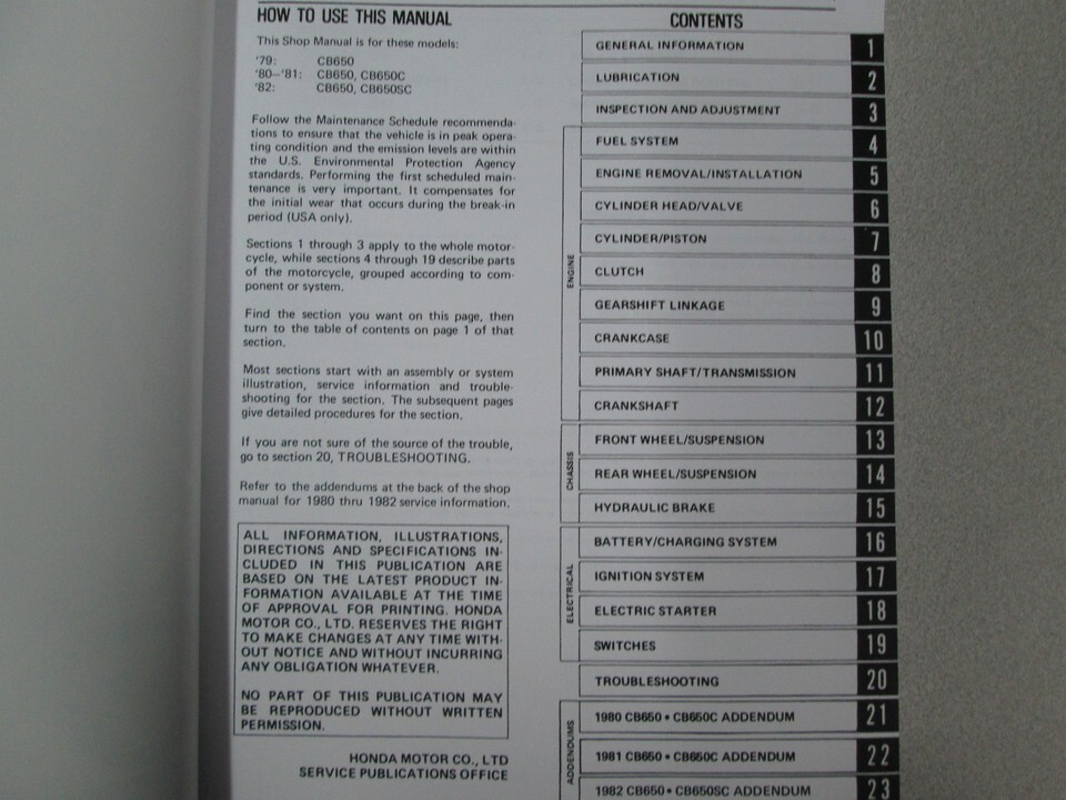 1979 1980 1981 1982 Honda CB650S CB650 CB 650 Nighthawk Servizio Repair Manuale