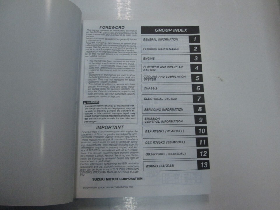 2000 2001 2002 2003 Suzuki GSX-R750 Workshop Repair Service Manual New- show ...