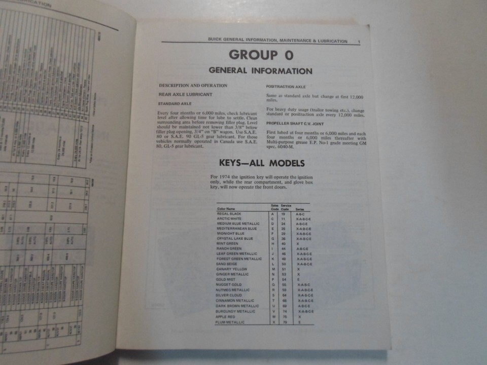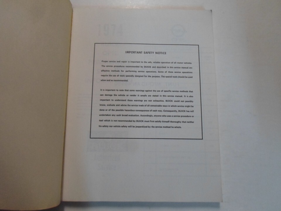 1974 BUICK Opel Manuel d'information sur le service preliminaire endommage use