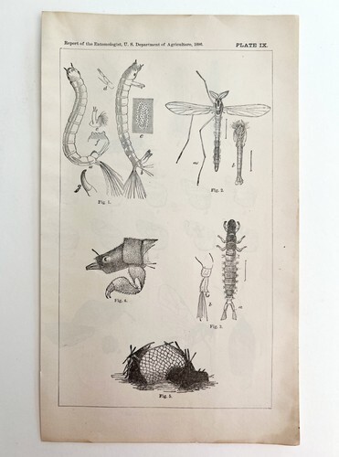 Chironomus Larvae And Unknown Insect Victorian 1887 Art Print Entomology DWT9B