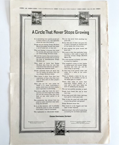 1916 Dodge Brothers Detroit Automobile Car Advertisement Ephemera 16 x 11"