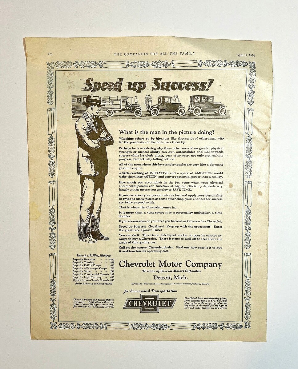 Antique 1924 Chevrolet Success XL Advertisement Automobilia Ephemera 14 x 11.25