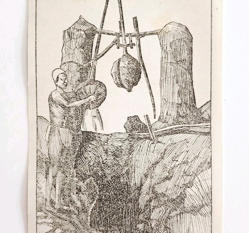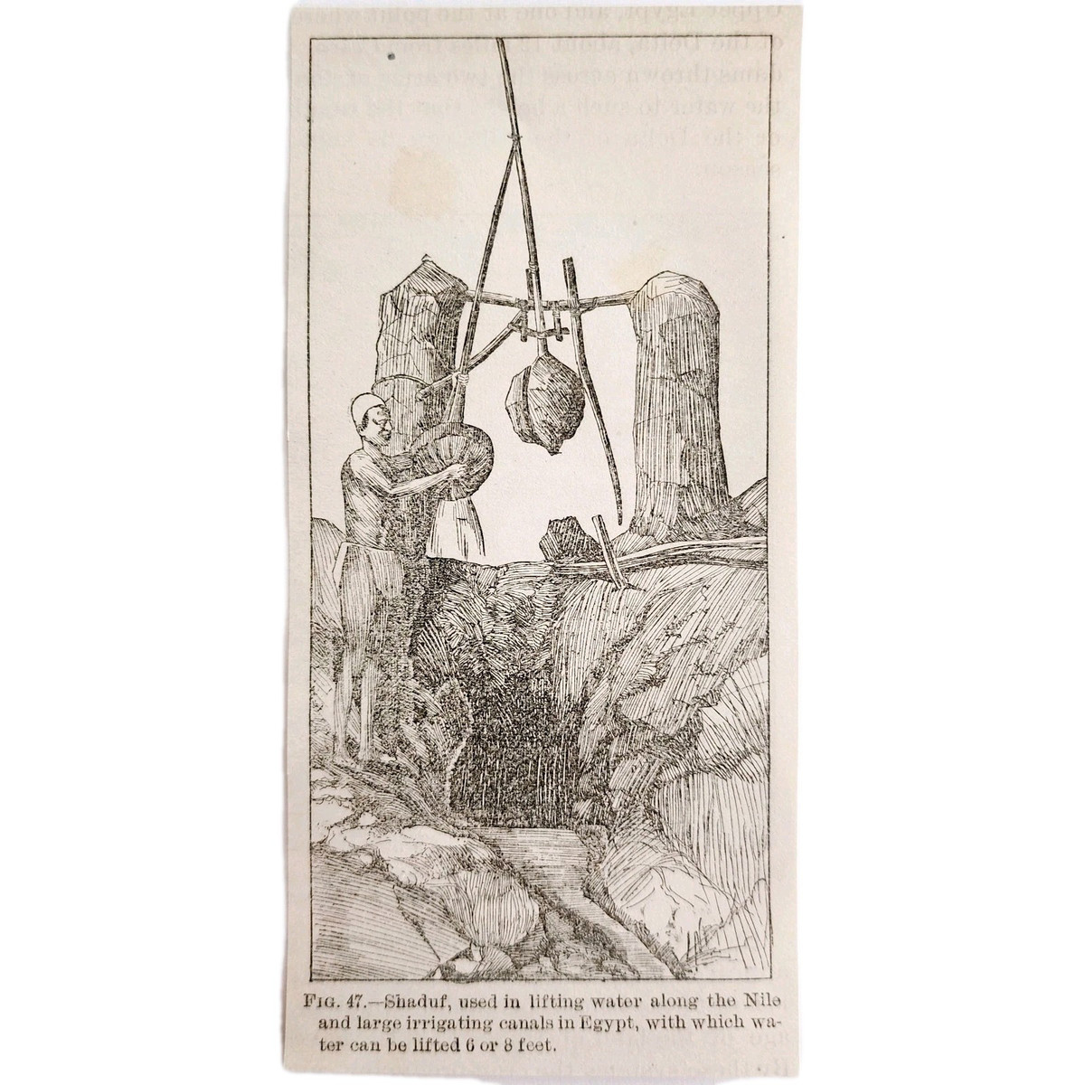 1903 Shaduf Water Lifting Mill Wood Engraving Agriculture Egypt Nile River F6D