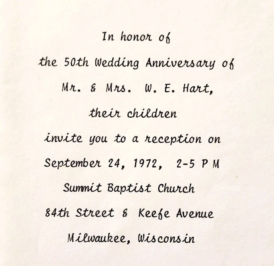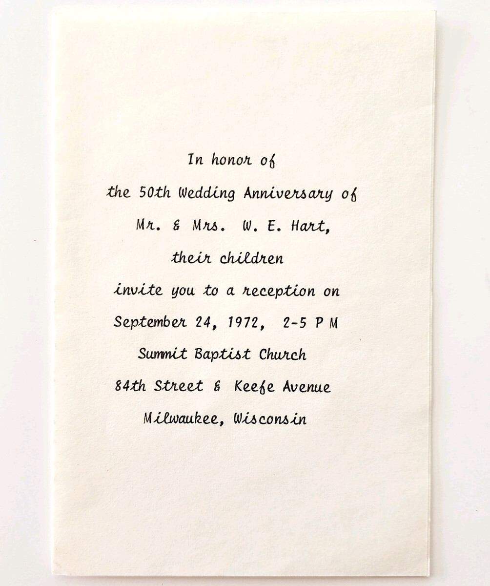 1972 50th Wedding Anniversary Invitation Summit Baptist Church Milwaukee F6C