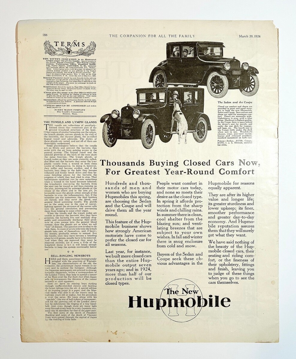 Antique 1924 Hupmobile Car XL Advertisement Automobilia Ephemera 14 x 11.25