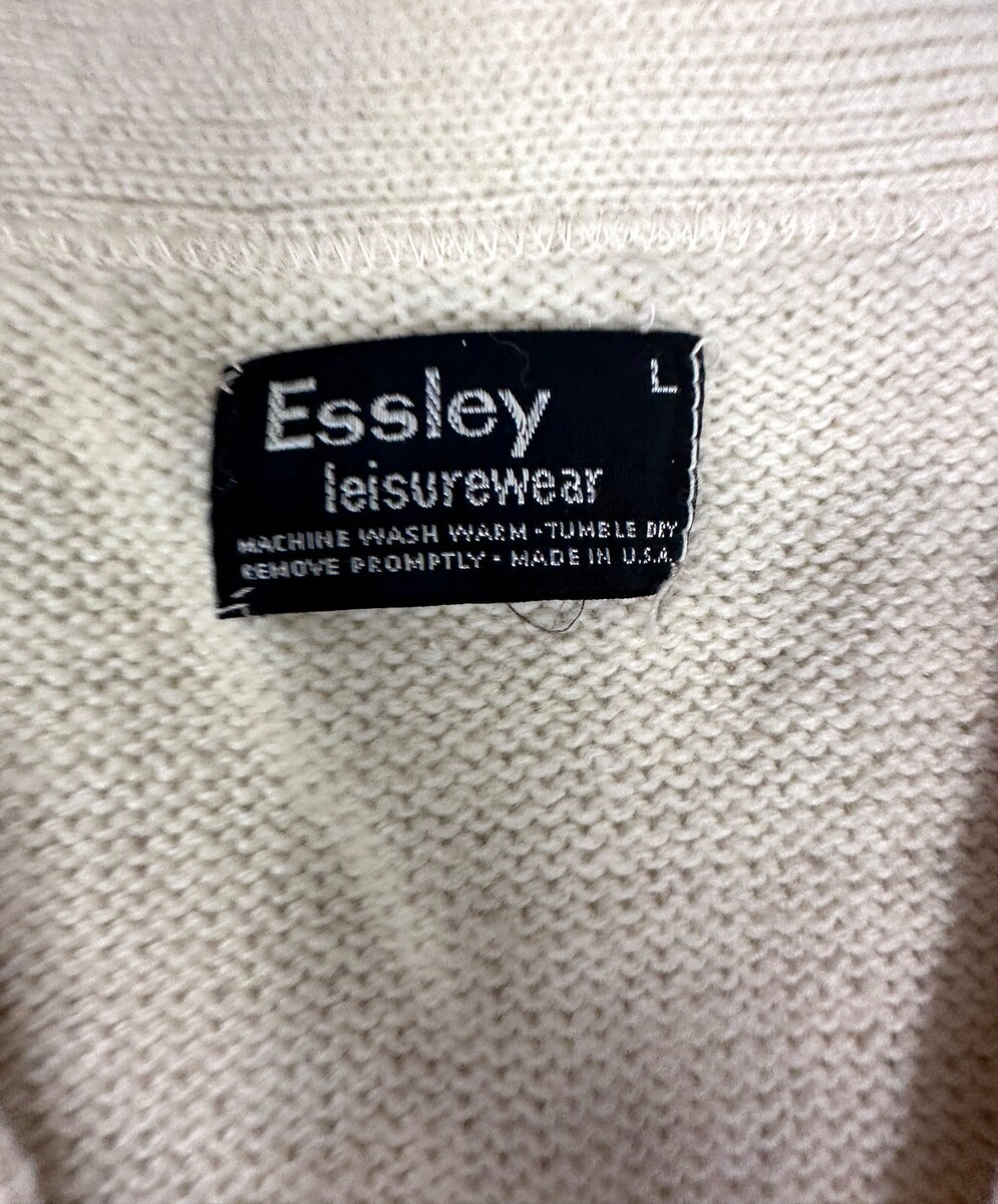 Essley VTG Ribbed Knit Acrylic Cardigan/Grandpa Sweater Ivory Mens L Scratchy