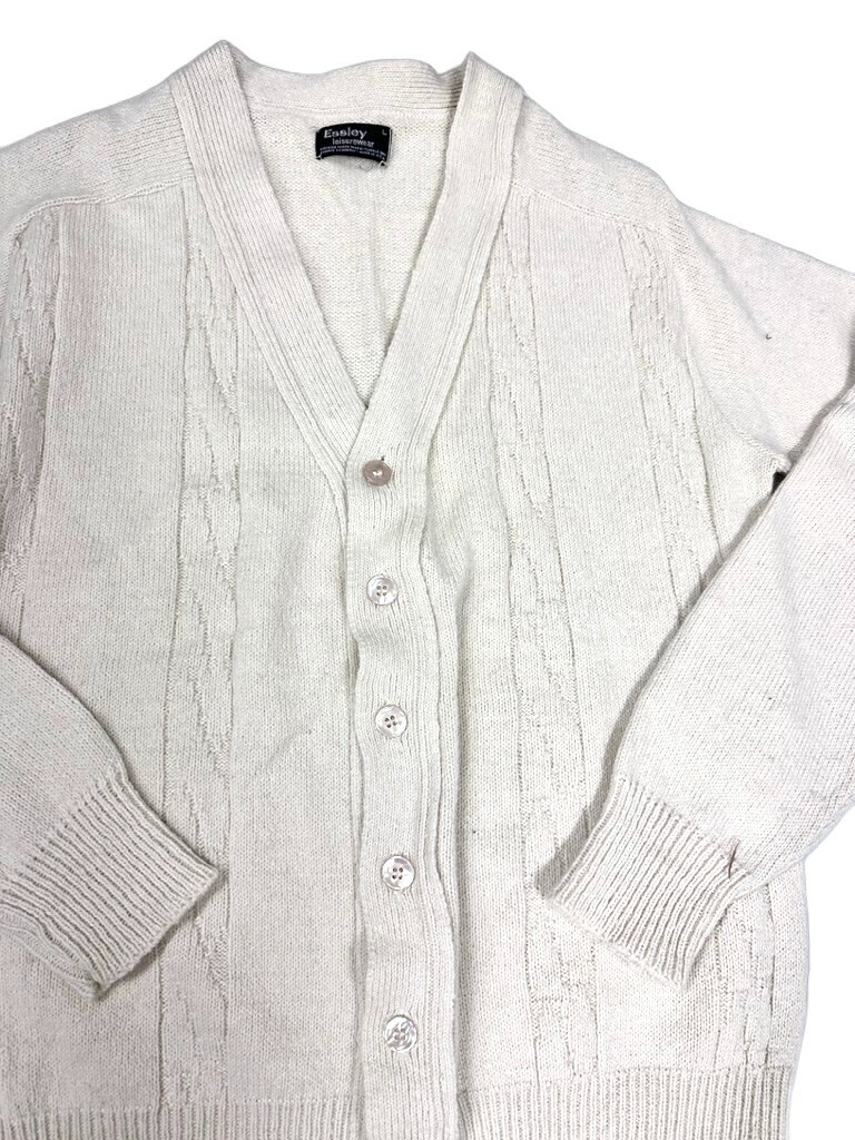 Essley VTG Ribbed Knit Acrylic Cardigan/Grandpacore Sweater Ivory Mens L