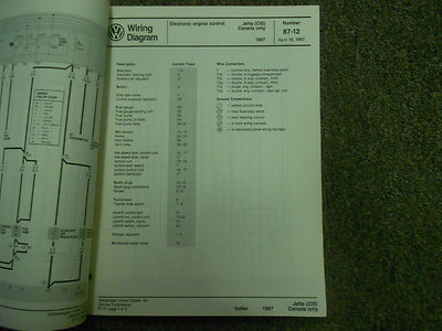 1987 VW JETTA (CIS-E) Manuale di riparazione del diagramma di cablaggio principale Manuale di controllo elettronico del motore mancante