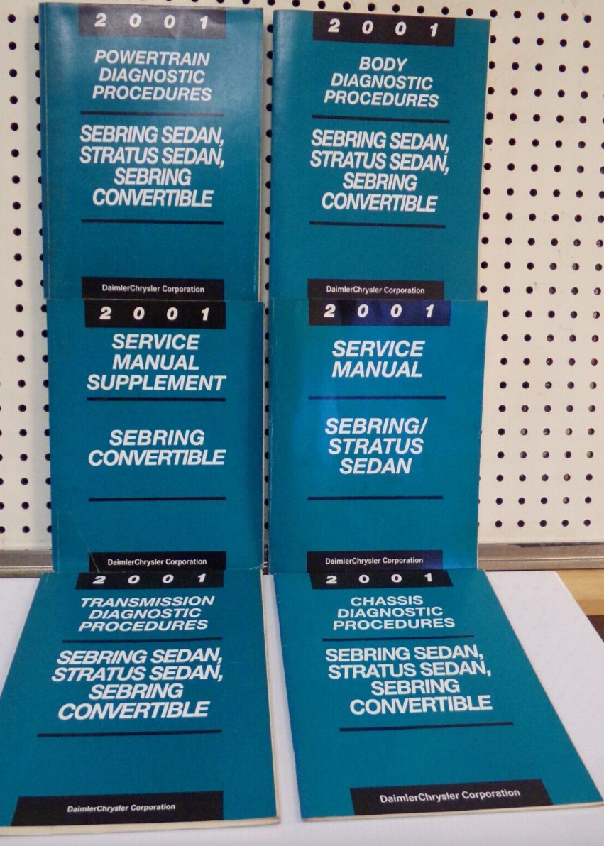 Manuale di servizio di fabbrica della berlina Chrysler Sebring e Dodge Stratus del 2001, supplemento al manuale di servizio per la decappottabile e manuali delle procedure di diagnostica di gruppo propulsore/carrozzeria/telaio/trasmissione