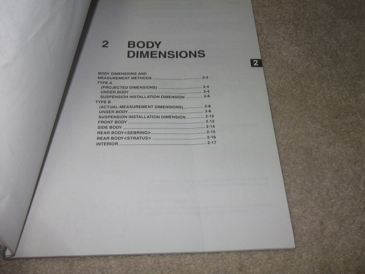 istruzioni passo passo, montaggio/smontaggio, illustrazioni esplose/diagrammi/risoluzione dei problemi, ottimo manuale da avere quando si possiede un SEBRING/STRATUS e manterra il vostro SEBRING/STRATUS sulla strada. Questo manuale ti fara risparmiare denaro in riparazioni/servizio.