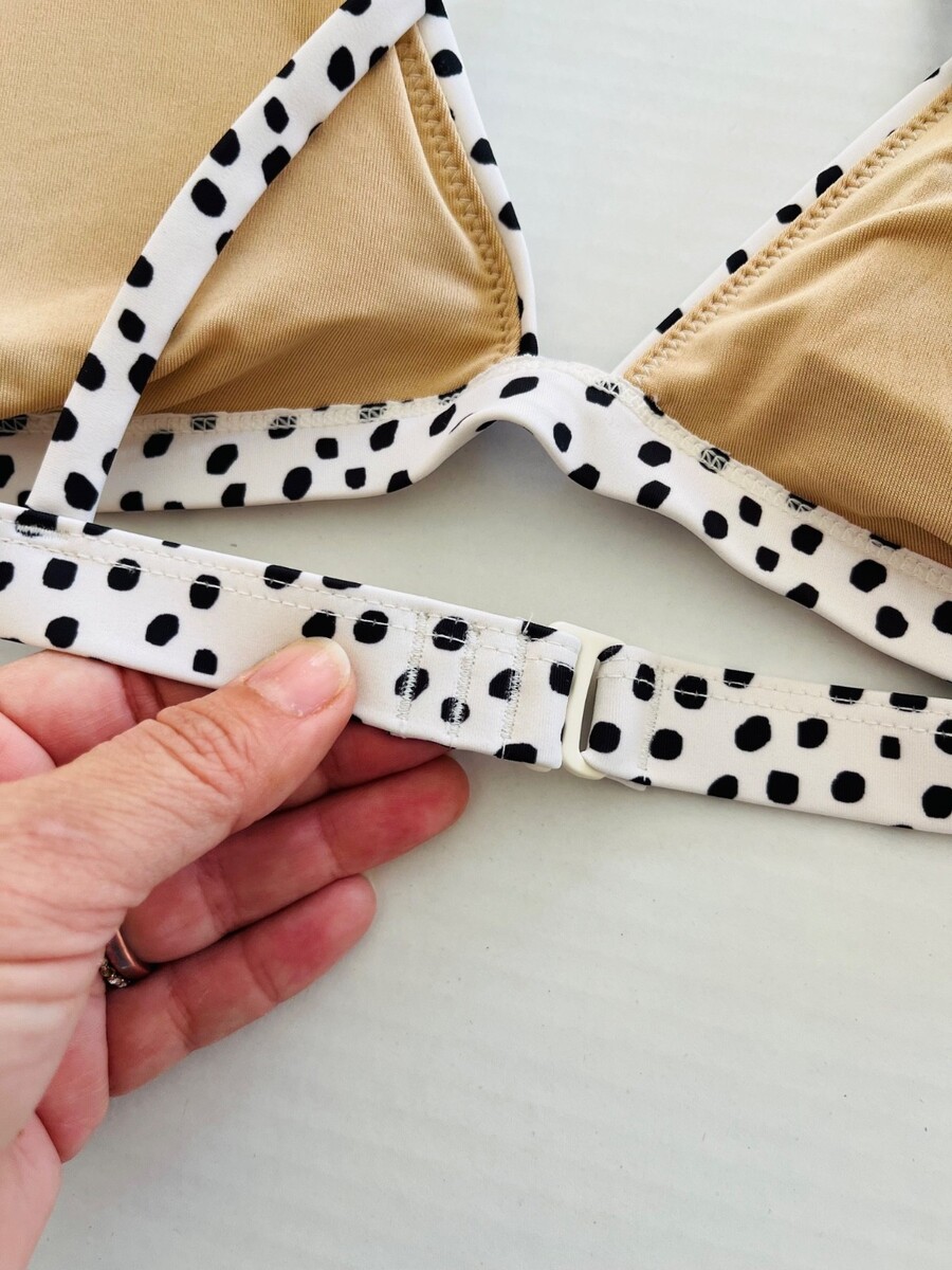 Old Navy Sz XL White Tie Strap Bikini Swim Top Bra Polka Dots V Neck UPF Protec.
