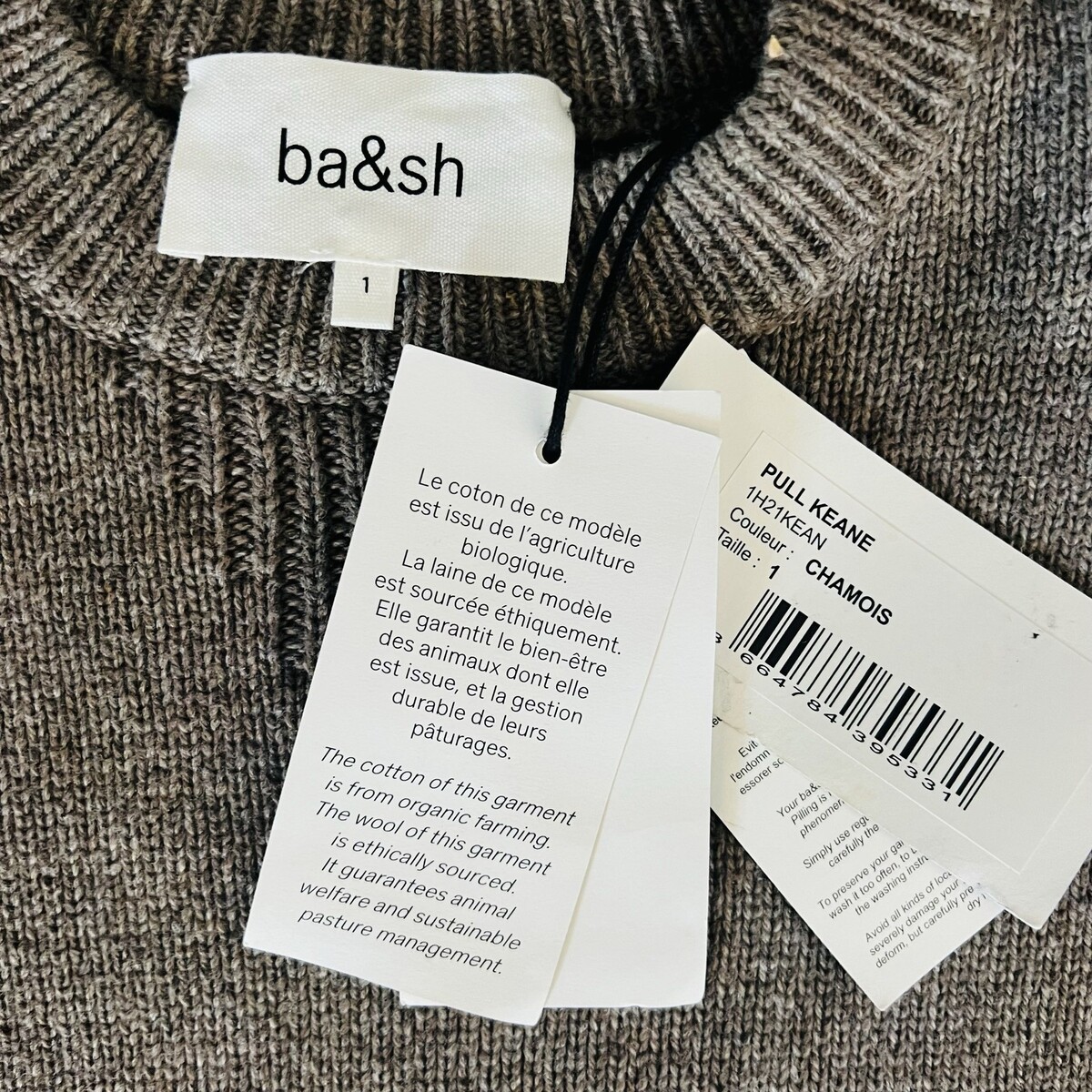 BA&SH Keane Lace-Up Cuff Wool & Cotton Sweater, Tan, Size Small, DESIGNER, NWT