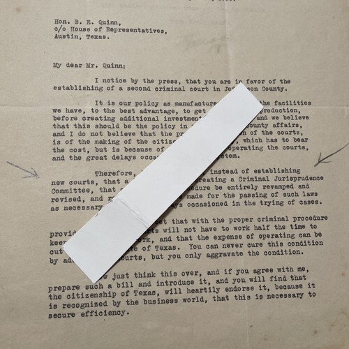 Beaumont Iron Works Drilling Equipment Mfgrs letter 1930 Dreadnaught drilling.
