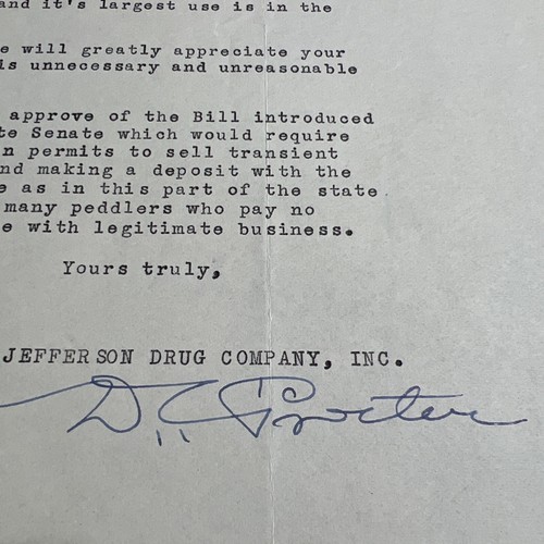 Vintage Letter Jefferson Drug Company Beaumont Texas Signed D.C. Proctor