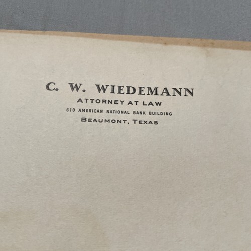 Beaumont Texas Letter 1935 Attorney C. W. Wiedemann 1935 Great Depression.