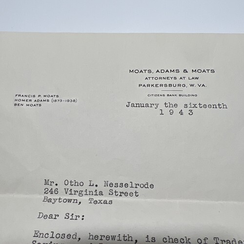 Parkersburg W Virginia Letter Moats Adams & and 26 similar items