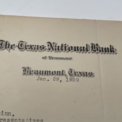 The Texas National Bank Beaumont Texas Letter 1929.