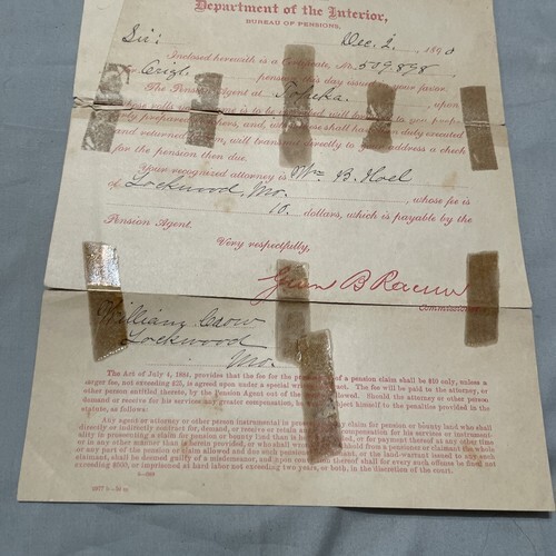 Bureau Of Pensions Letter 1890 Department Of and 50 similar items