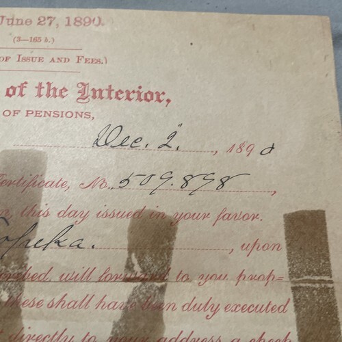 Bureau Of Pensions Letter 1890 Department Of The Interior.