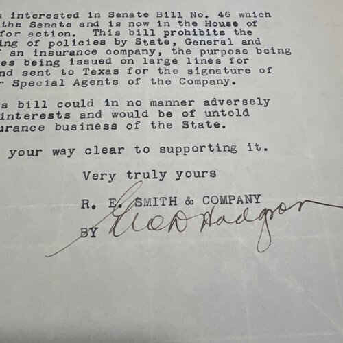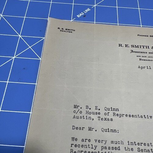Old Letter 1935 Beaumont Texas R.E. Smith Signed George Hodgson Senate Bill #46