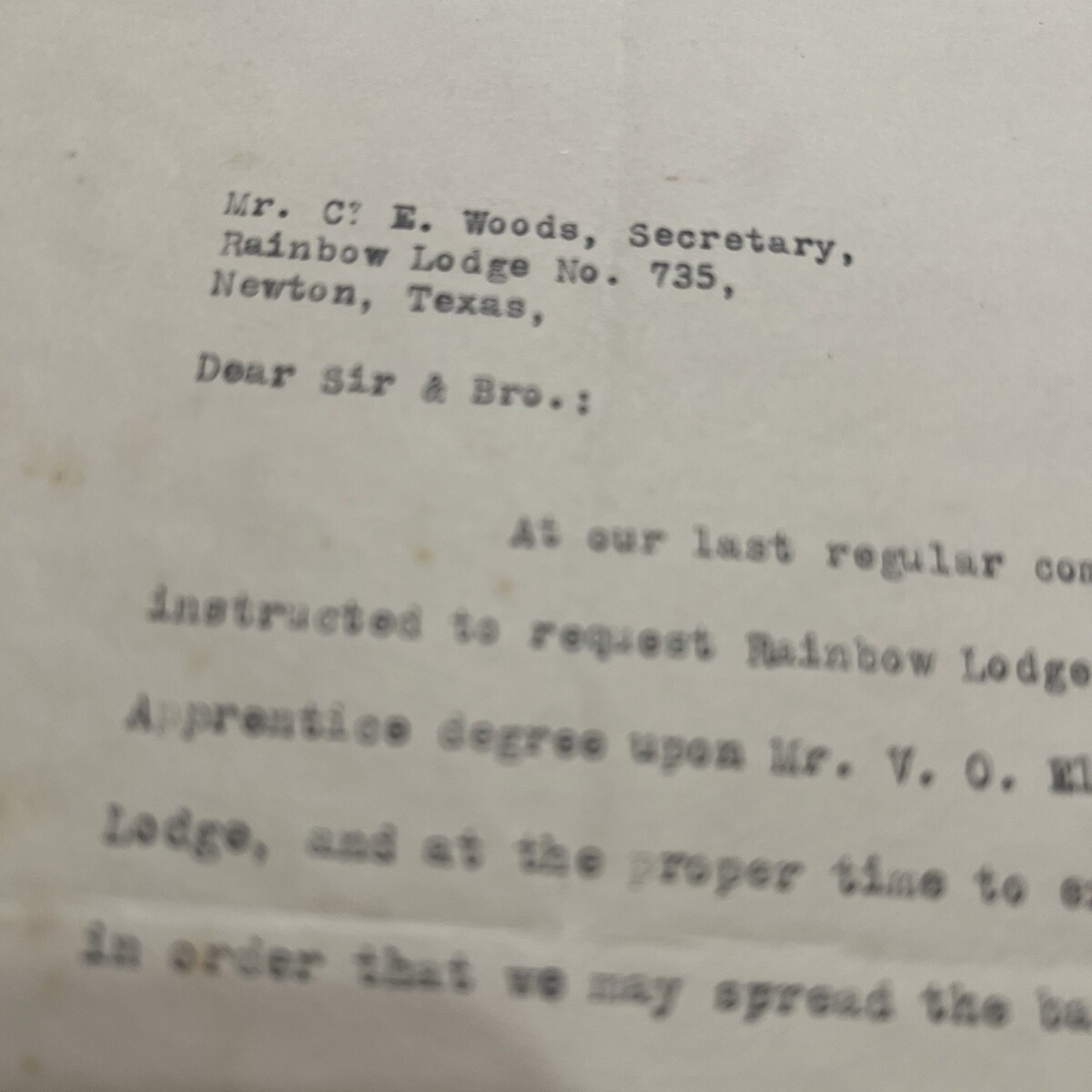 Antique Letter Masonic Stanfield Lodge No. 217 Denton Texas 1932 J. W. Erwin