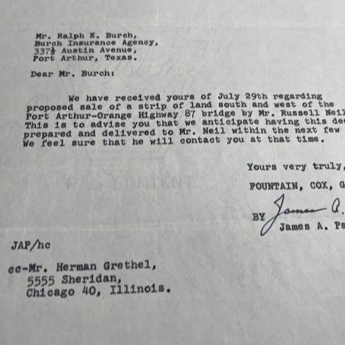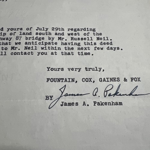 Vtg Letter 1958 Fountain Cox Gains Fox Houston Texas Signed James A Pekenham