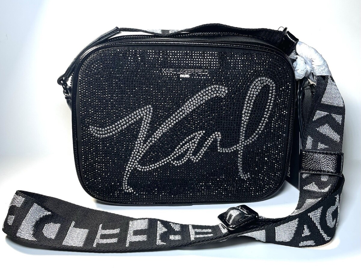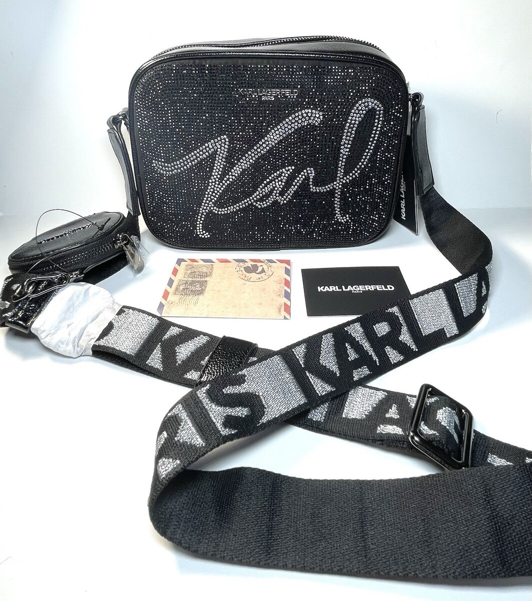 NWT $198 KARL LAGERFELD PARIS Rhinestone Karl Logo Maybelle LH4EO9BJ Handbag