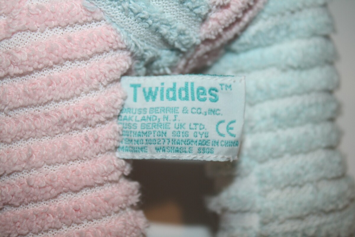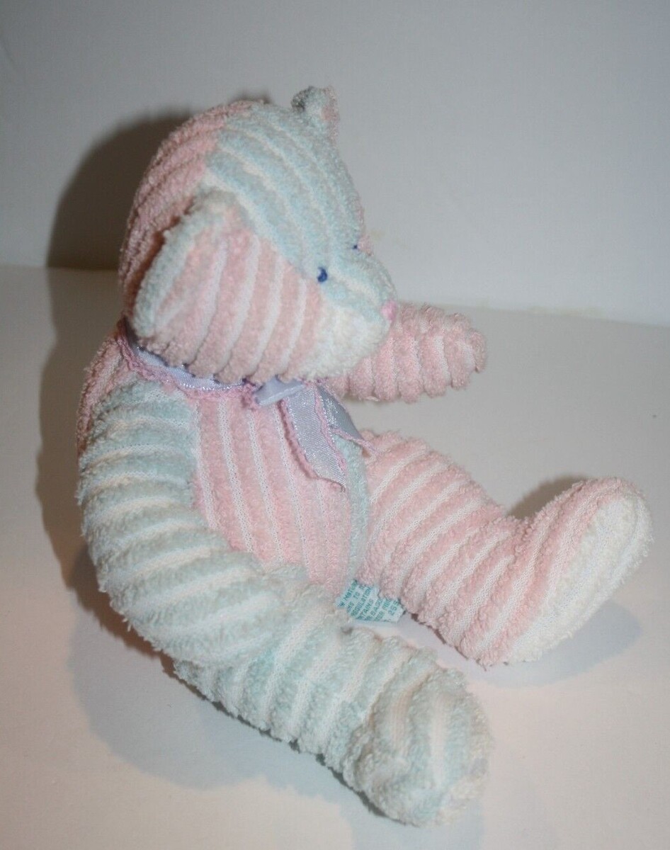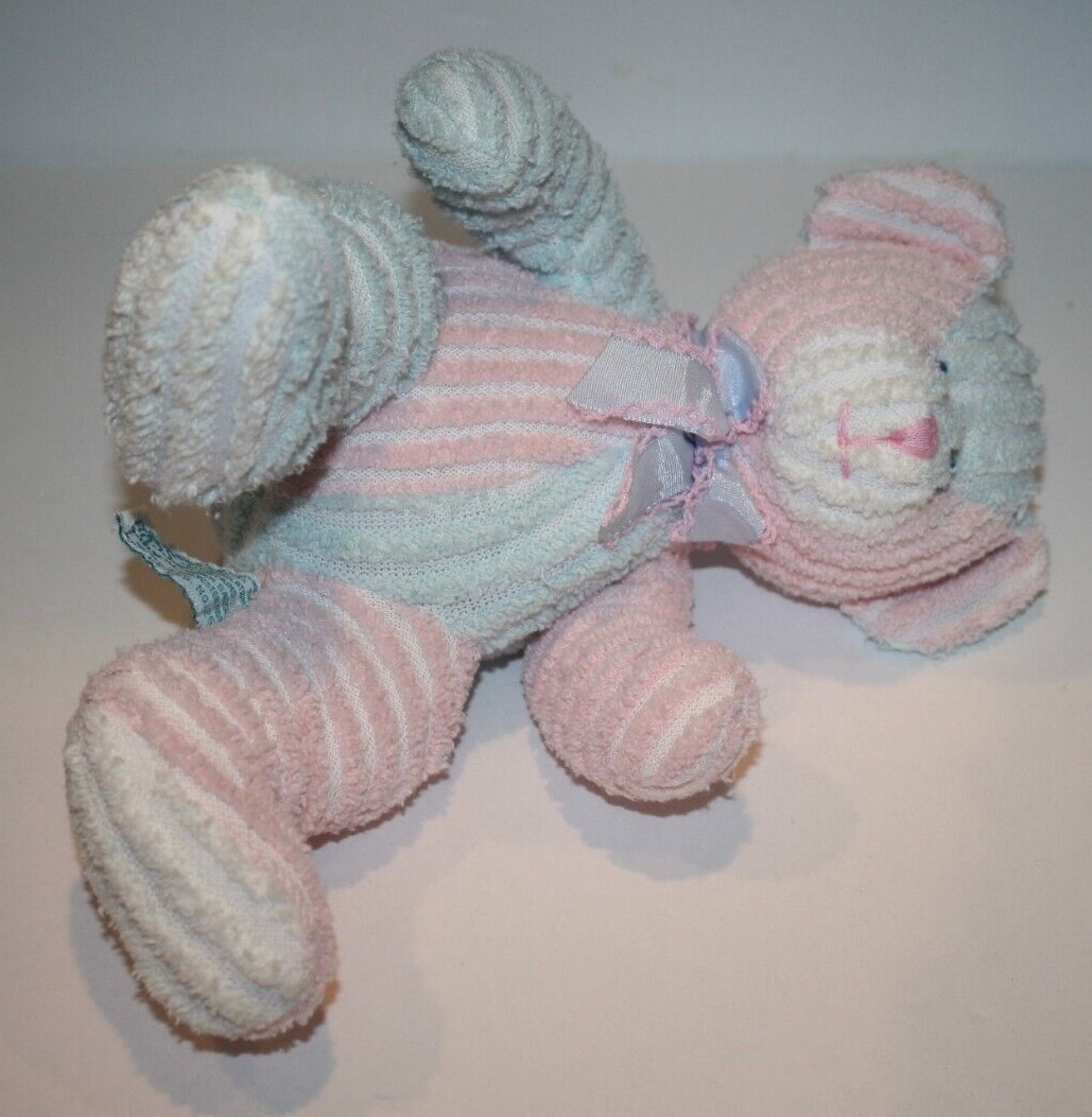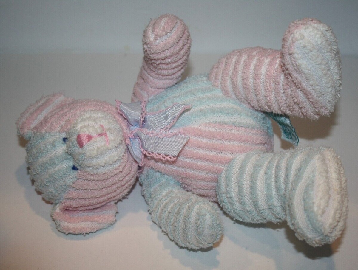 Condition: Great Clean Condition. Inner Baby Rattle. Adorable Chenille Pastel Pink and Blue Plush Cloth Material. Wears a ribbon bow. Smoke-free environment