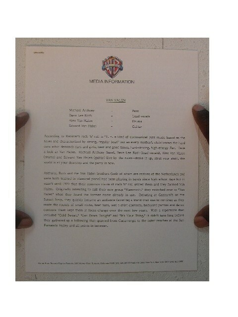 Van Halen Press Kit 'Self-Tited Fidom Album'