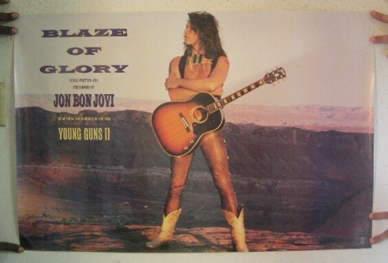 Il poster e circa 36 pollici approssimativamente e non e in condizioni di menta. Ha ding di bordo lievi. E per l'album Young Guns II. Viene spedito arrotolato in un tubo di cartone duro. BX76