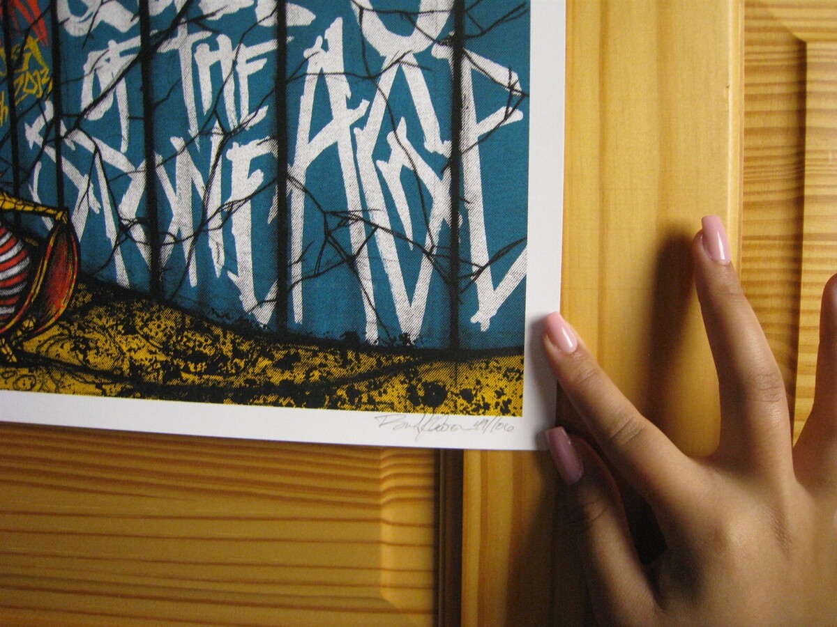 Cette affiche d'environ 13 pouces par 25 pouces. Ceci est en parfait etat. L'affiche est signee et numerotee par l'artiste visuel. C'est le numero 49 de 106. Les navires d'affiches sont roules dans un tube en carton dur. B137.