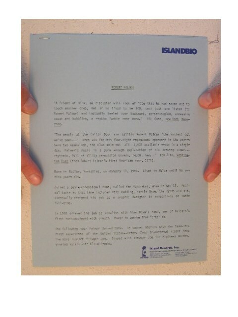 Robert Palmer Dossier De Presse Power Station POWERSTATION