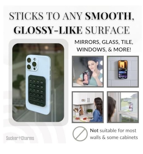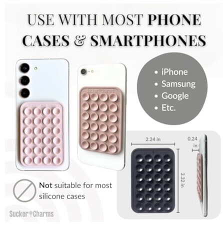 The Sucker Charm brand phone holder is compatible with a variety of phone models and features a fastening system that uses suction cups to securely hold your device in place. This mount is made of silicone material and is designed to be durable and long-lasting. Whether you need a phone holder for home or office, this mount is the perfect solution. ships in 24 hours inventory location, MW1001.