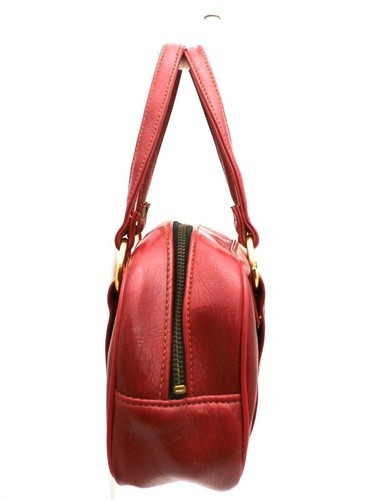 Super cute and extra soft vintage cherry red vinyl 5 oe" by high x 7 oe" wide mini pocketbook with double 11" matching straps, brass zipper closure, and black vinyl lining. The vintage purse is in excellent condition.