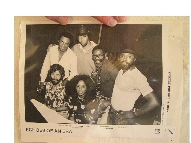 Il kit di stampa include informazioni sull'artista e una recensione dell'album "Echoes of An Era" Artisti sull'album includono: Freddie Hubbard, Stanley Clark, Joe Henderson, Lenny White, Chick Corea e Chaka Khan. La foto del kit di stampa misura 8 x 10 pollici approssimativamente ed e in ottime condizioni.