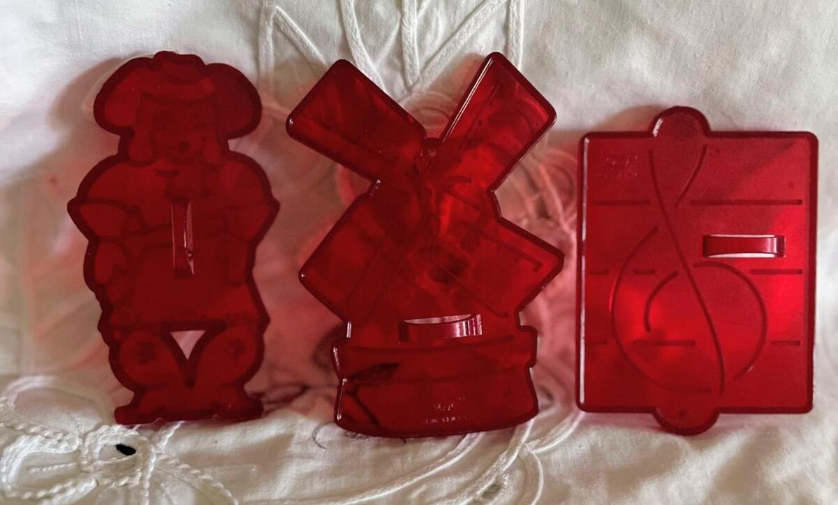 3 Vintage HRM Red Plastic Cookie Cutters Cowboy Windmill Clef Note