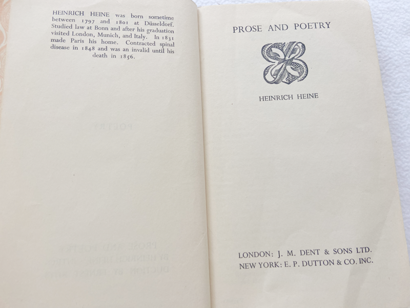 1948 HC Prose and Poetry: A Selection by Heinrich Heine