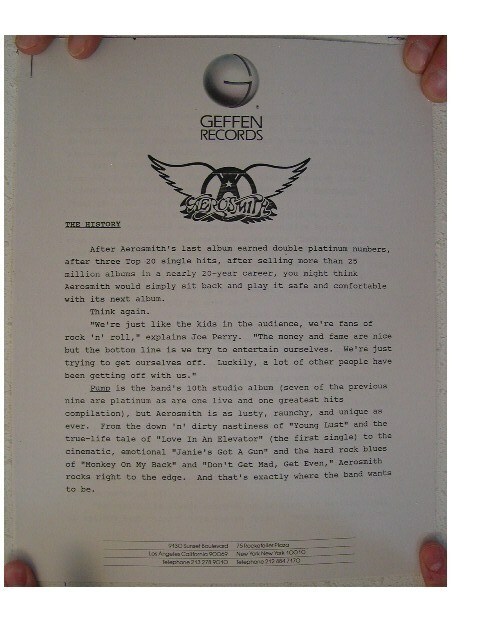 Kit De Prensa Vintage De Aerosmith Palabras Desde El Frente