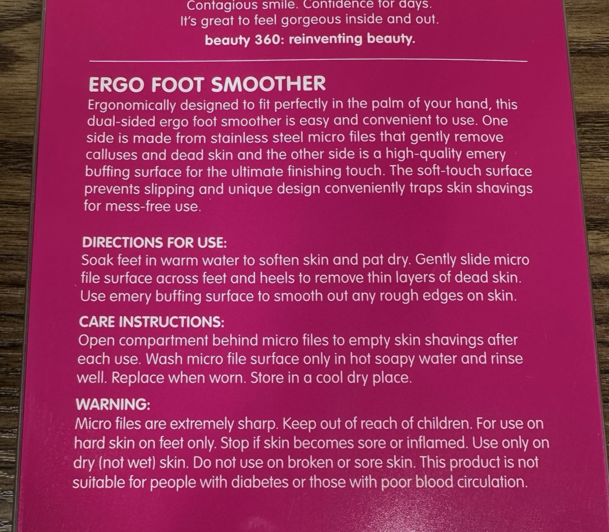 NEW Ergo Foot Smoother for Smoothing and Buffing Skin by Beauty 360 Micro File Pedicure Tools