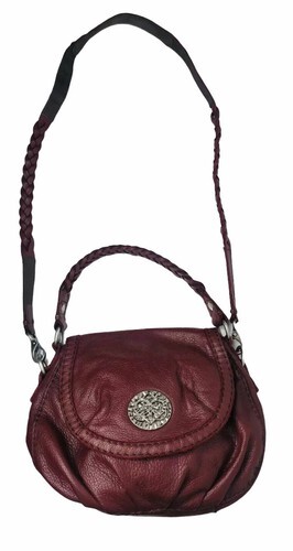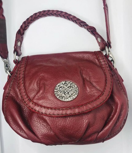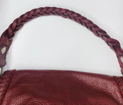 Lucky Brand Burgundy Red Leather Braided Strap Flap Purse Handbag Heart Closure