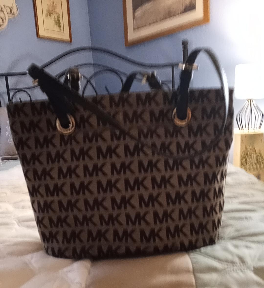 MICHAEL KORS Jet Set Signature Bag Tote Jacquard & Leather With free Wristlet