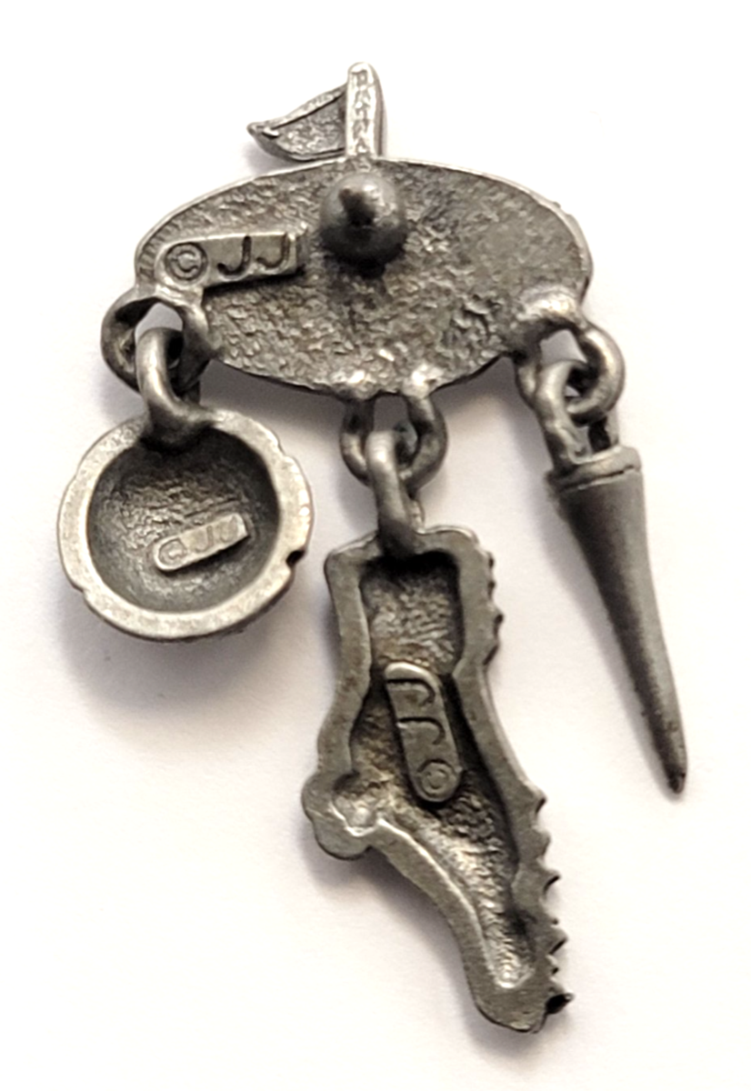 Vintage JJ Pewter Golfer Pin Dangling Golf Charms Shoe Ball Tee Hole Flag Sports