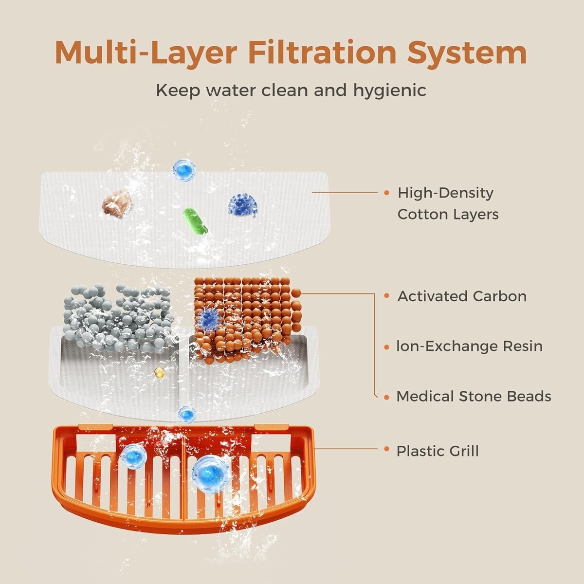 ? Advanced Multi-Layer Filtration for Clean Water -- Features an activated carbon and multi-layer filtration system that removes impurities, odors, and debris, ensuring clean, fresh, and great-tasting water for your pet 24/7.