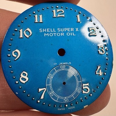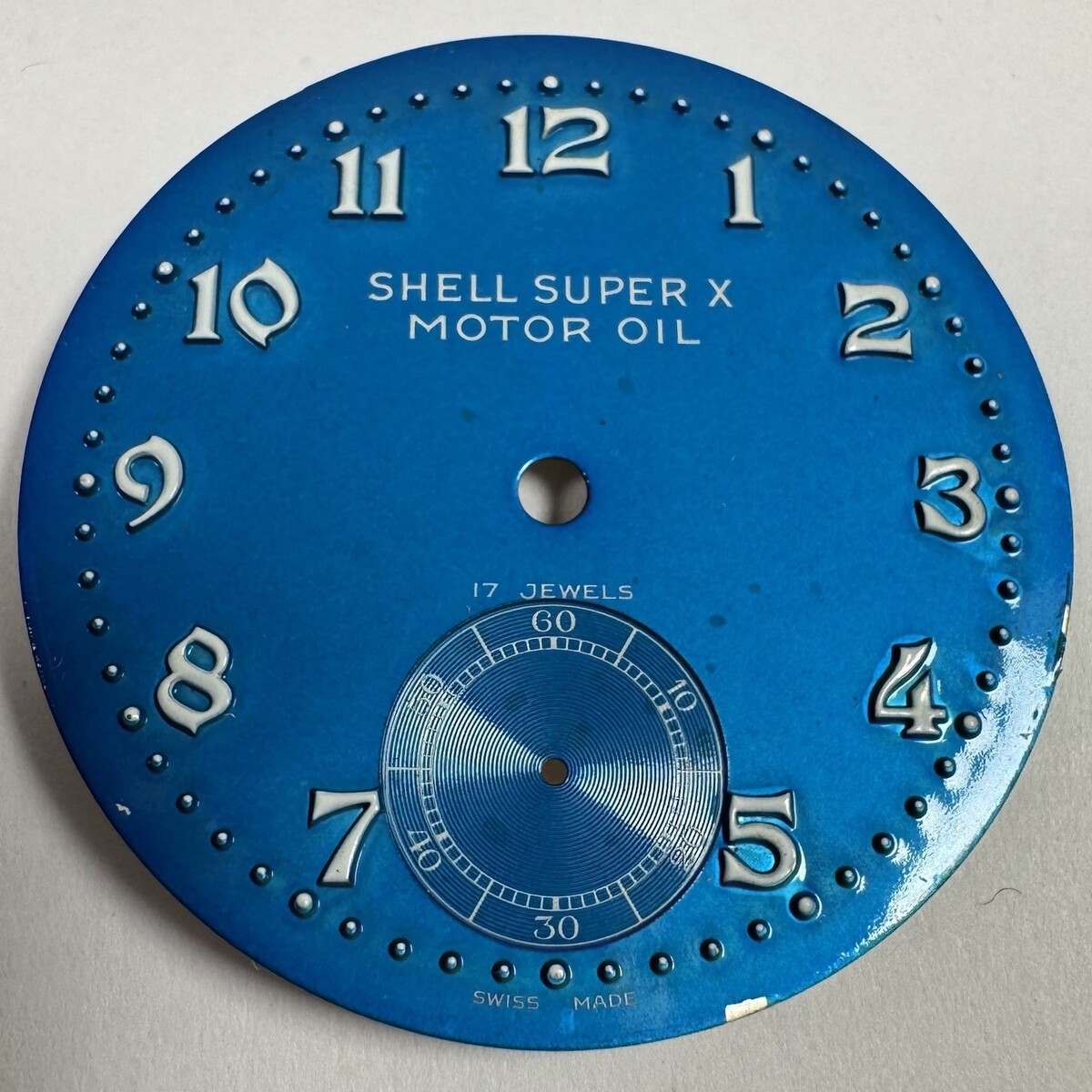 Shell Super X Motor Oil Clinton 17 Jewels Pocket Watch Dial & Case No Movement
