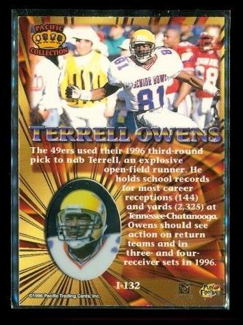 Terrell Owens 1996 Pacific CROWN COLLECTION Rookie Card #I-132 Senior Bowl Gold