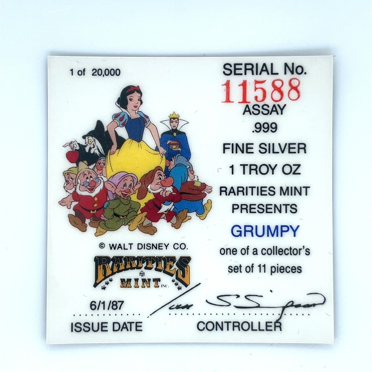 Rarities Mint 1 Oz. Silver Snow White Coin "GRUMPY" in Original Packaging