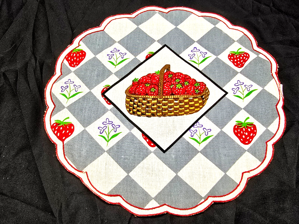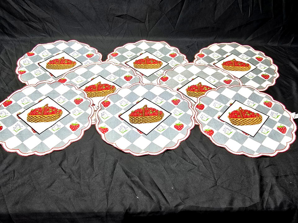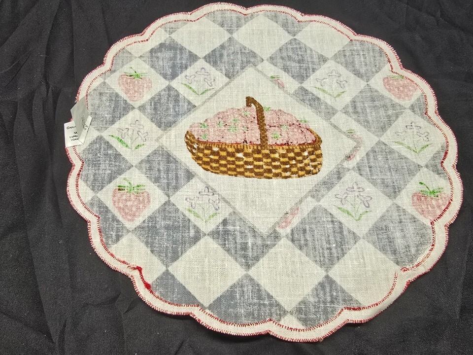 Vintage McCrory 10" Strawberries In A Basket Table Placemat Doily - Set Of 6