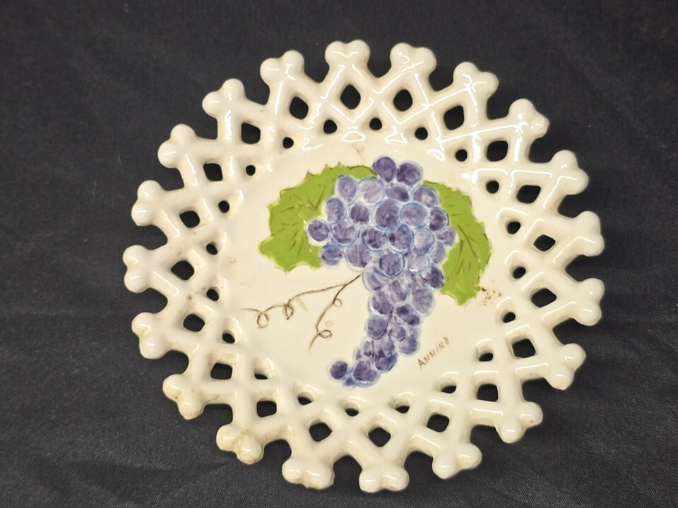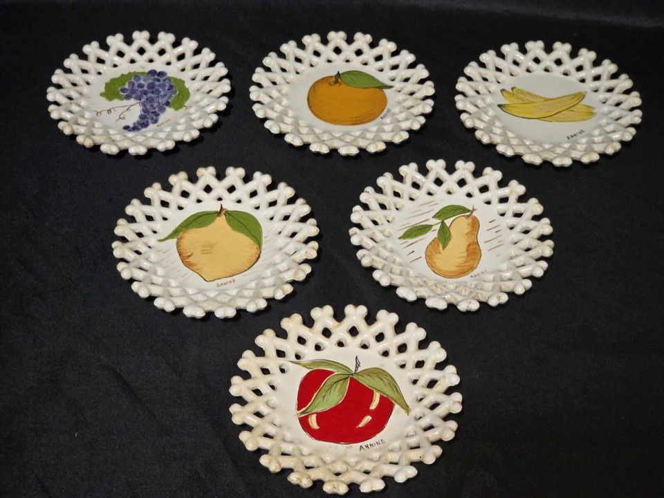 Vintage Ceramic Lace Fruit Coasters - Apple Orange Grape Pear Banana - Set Of 6